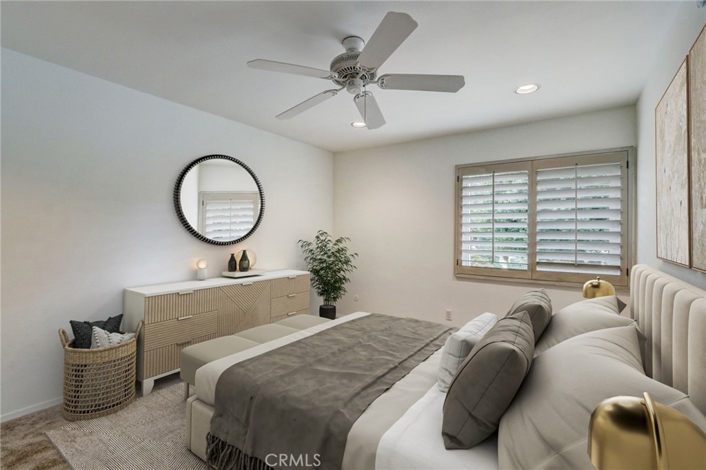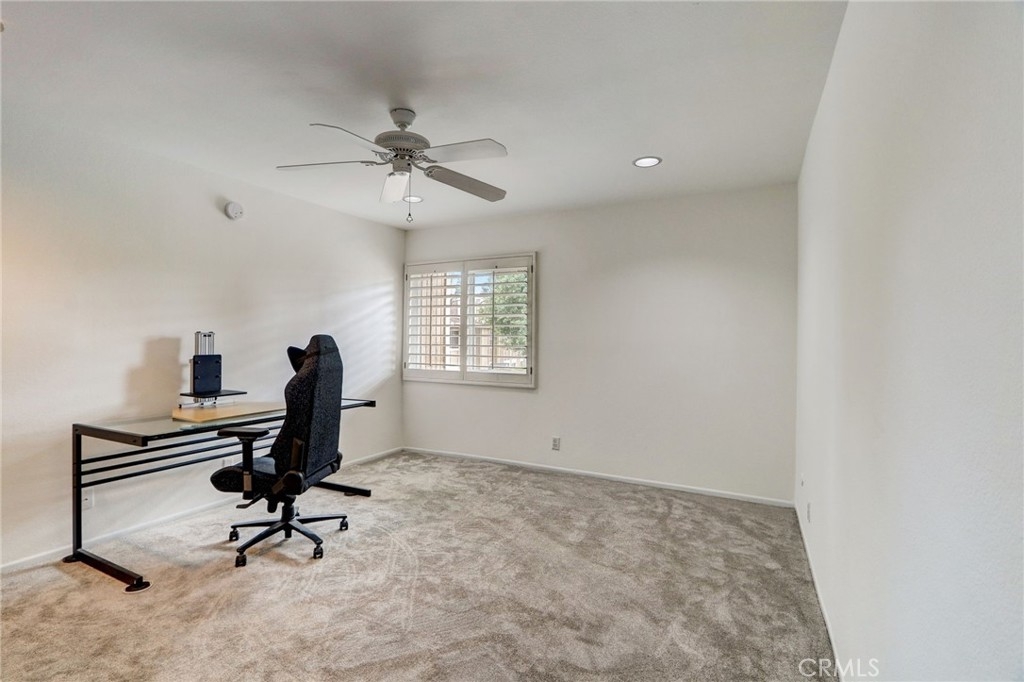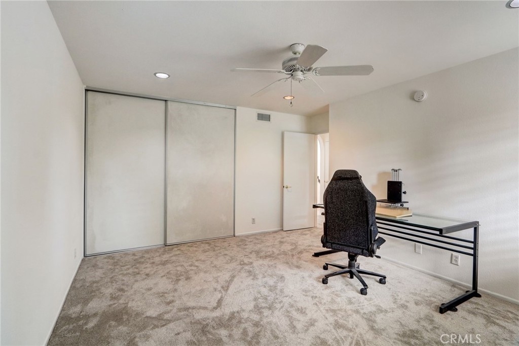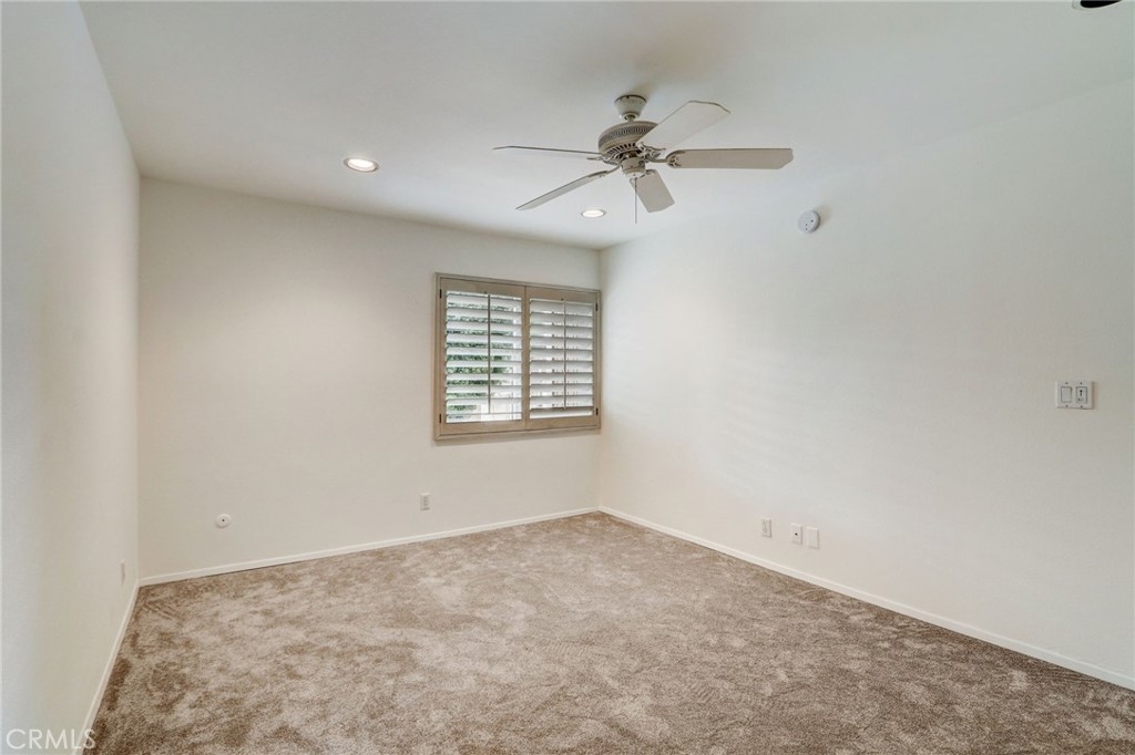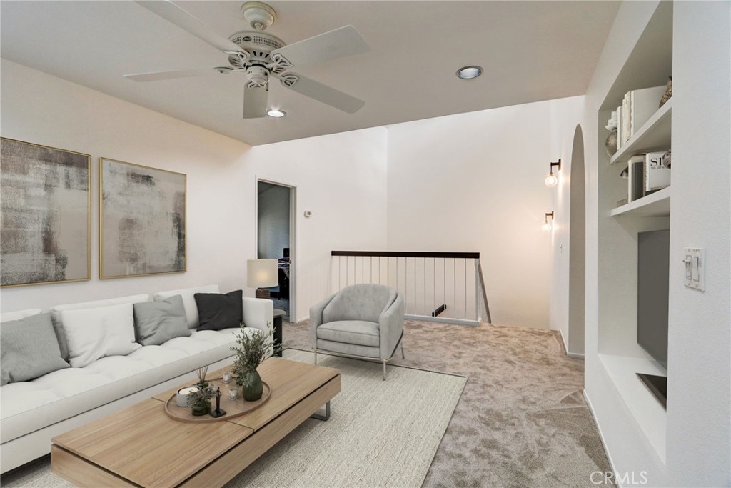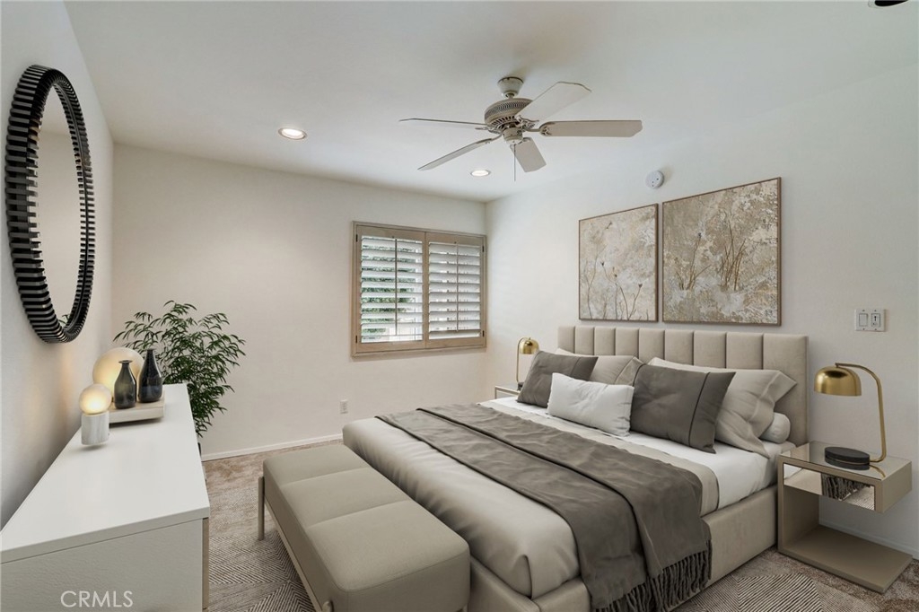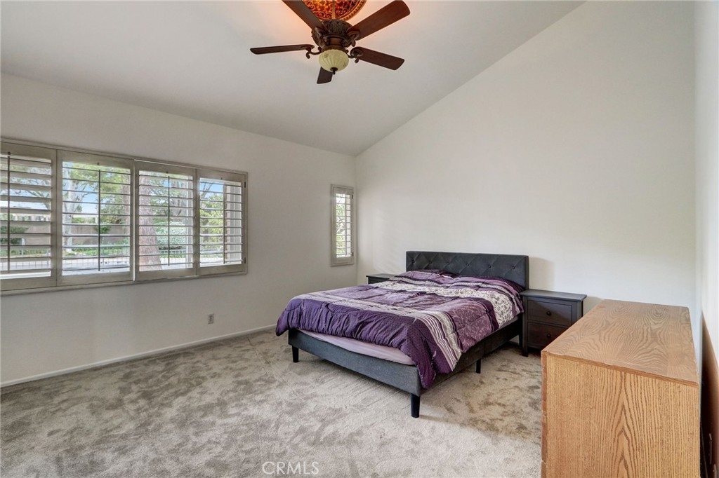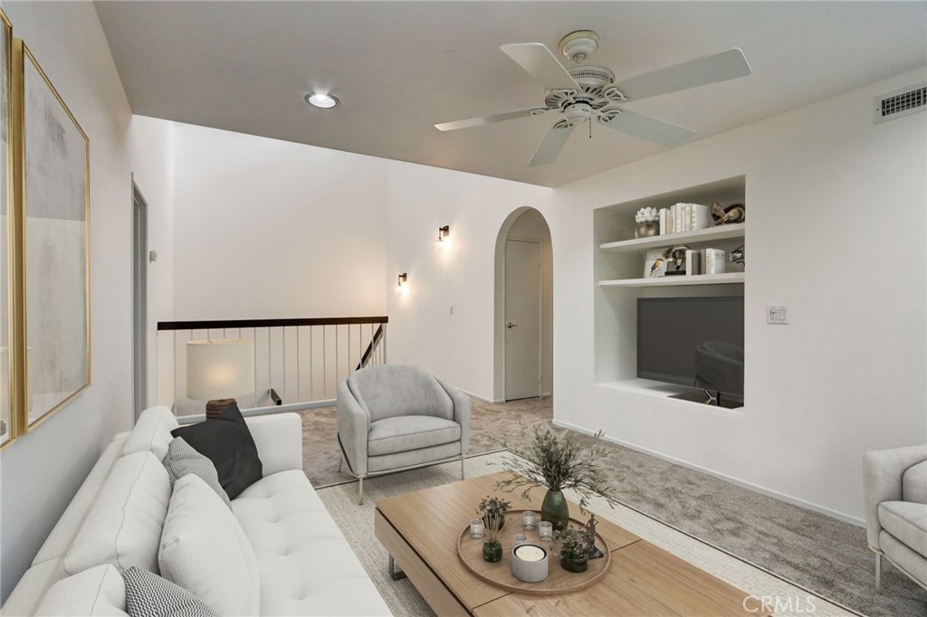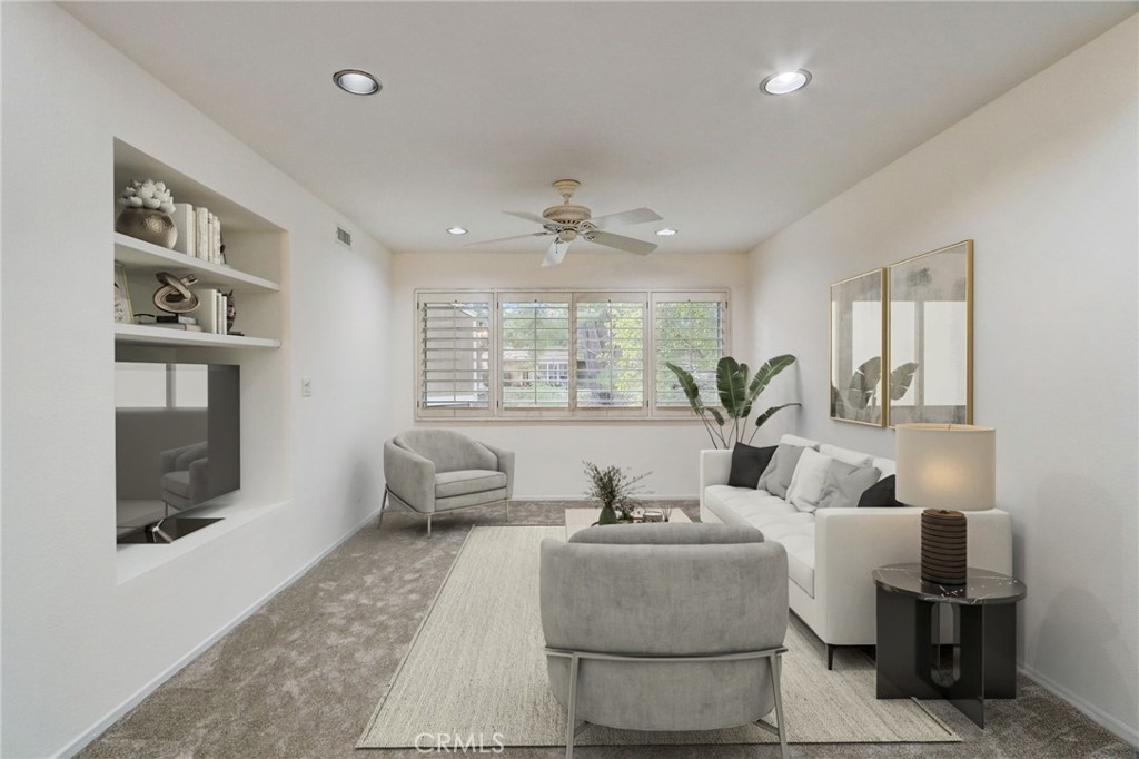 Welcome to your new oasis nestled in a serene community. This remarkable end unit offers an abundance of space and amenities, ensuring a lifestyle of comfort and convenience. As you enter, you'll be greeted by an expansive open floor plan with soaring ceilings, creating a sense of airiness and freedom. The large loft area, akin to having a 4th bedroom, adds versatility to the layout, catering to your individual needs and preferences. Recent upgrades including new paint and carpet breathe new life into the interior, while the master bath presents a haven of relaxation with its Jacuzzi tub featuring jets and a newly remodeled shower. Privacy is a top priority in this residence, as it stands out from neighboring units with just one shared wall and its own private entrance. Relaxation awaits on the patio, where lush hills and trees provide a serene backdrop, offering a cool and secluded atmosphere. Adding to the charm, the outdoor space features an awning and string lights, creating an ideal setting for alfresco dining and entertaining. Plus, there's a built-in natural gas BBQ grill, eliminating the need for propane tanks. Inside, large front windows adorned with shutters flood the space with natural light, further amplifying the sense of openness. Storage solutions abound, with a walk-in closet featuring built-in shelving in the primary bedroom and ample closet space throughout the home. Practicality meets convenience with a 2-car garage and additional guest parking always available. Shelving and cabinets in the garage provide ample storage options, ensuring a clutter-free living environment. This exceptional property boasts access to a wealth of community amenities through its HOA, including three pools, a hot tub, clubhouse, gym, and three tennis courts. Additionally, the HOA covers maintenance of all exterior aspects of the building, earthquake insurance, as well as basic cable and internet services provided by Spectrum. Don't miss the opportunity to experience the epitome of comfortable living in this meticulously maintained residence. Schedule your viewing today and discover the perfect blend of luxury and convenience in this exclusive community.