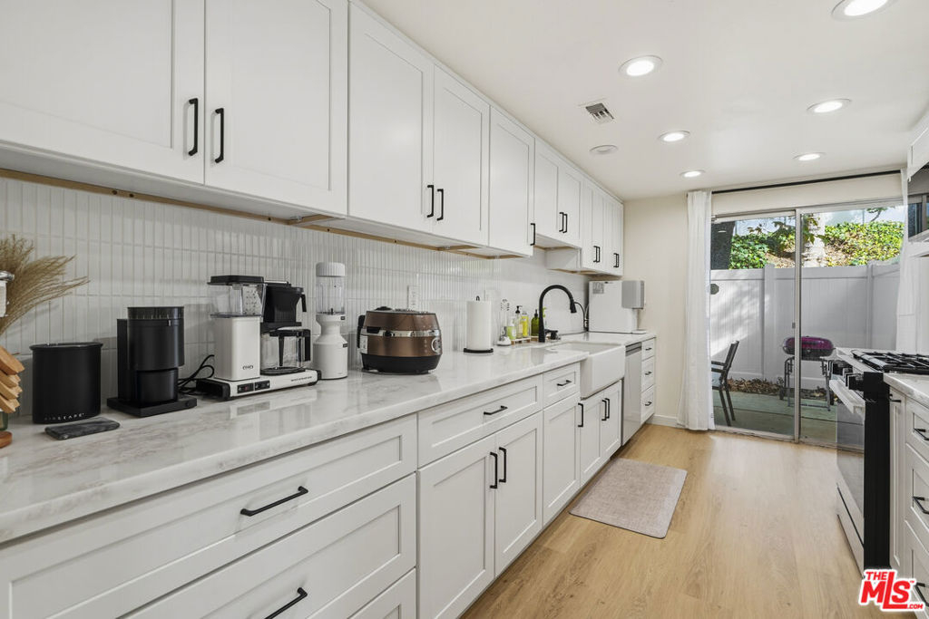Welcome home to this beautifully remodeled 2-story, 3-bedroom, 2.5-bath corner townhouse in the highly desirable Northridge Townhome Estates. From the moment you step inside, you'll be greeted by an inviting, sun-filled living room with brand-new electric fireplace, seamlessly flowing into the dining area and the completely renovated kitchen with new granite countertops, new cabinetry and Samsung appliances, perfect for modern living and entertaining. The spacious living area opens through large sliding glass doors to a private patio with new vinyl fencing, ideal for al fresco dining or weekend BBQs. The main floor also includes a powder room, laundry room, and direct access to the attached 2-car garage for added convenience. Upstairs, you'll find a 2nd story family room, a serene primary suite with vaulted ceilings, dual vanities, and a walk-in closet, along with two additional spacious bedrooms, sharing a full bath. Additional highlights include fresh interior paint, new SPC and tile flooring throughout, recessed lighting, wine fridge, central A/C and heat, a smart front door lock, and guest parking conveniently located near the unit. The well-maintained community offers resort-style amenities, including three swimming pools, spa, three tennis courts, a basketball court, clubhouse, gym, sauna, and on-site management. HOA dues cover water, sewer, landscaping, premium cable, high speed internet, and earthquake insurance, and the complex recently completed a major exterior facelift. Centrally located in one of Northridge's most sought-after neighborhoods, this home is close to shopping, dining, entertainment, California State University Northridge (CSUN), and Granada Hills Charter High School offering the best of comfort, convenience, and Southern California living.