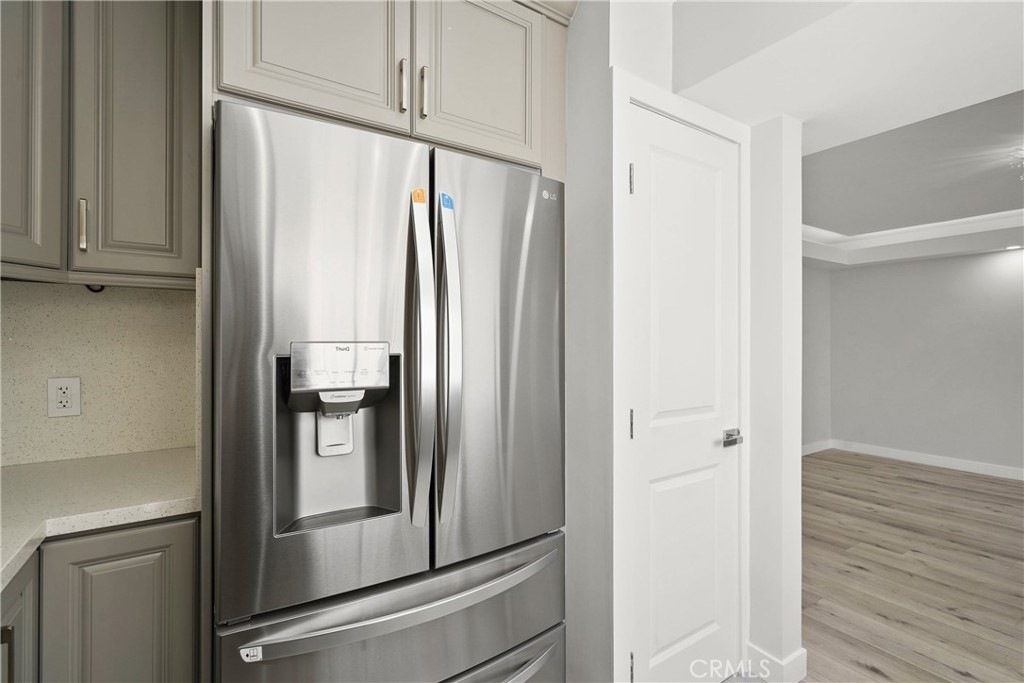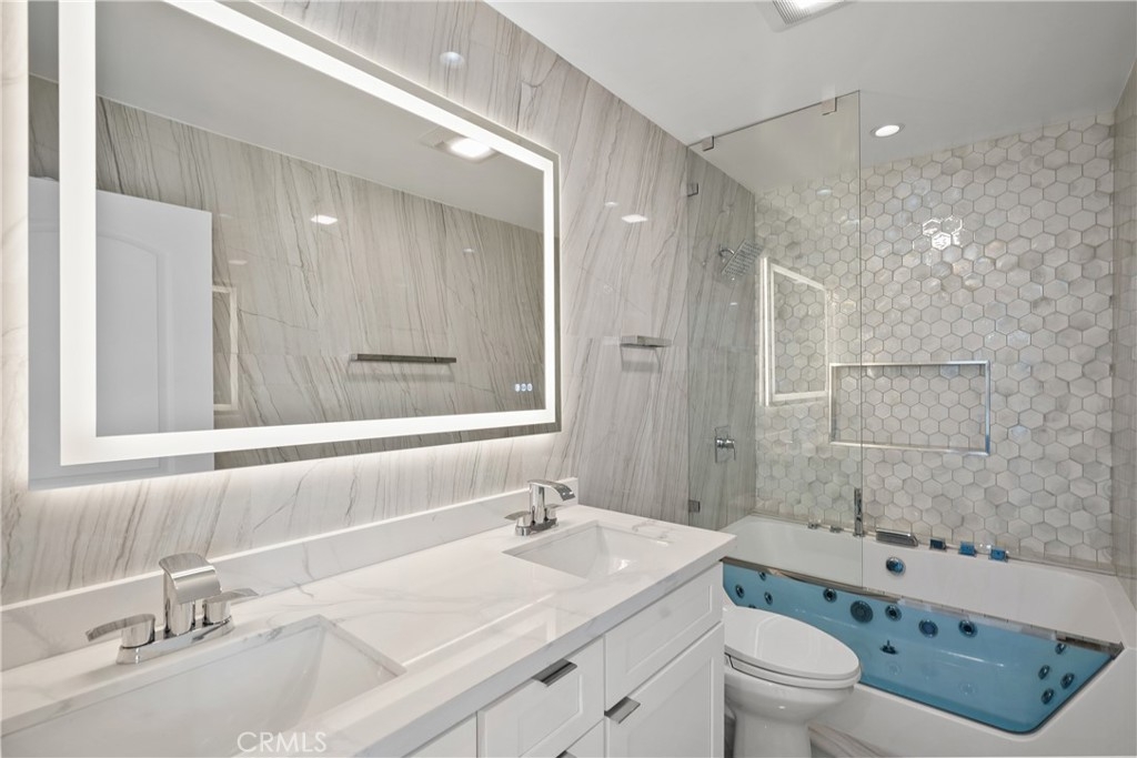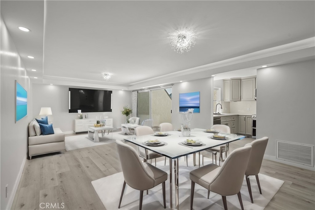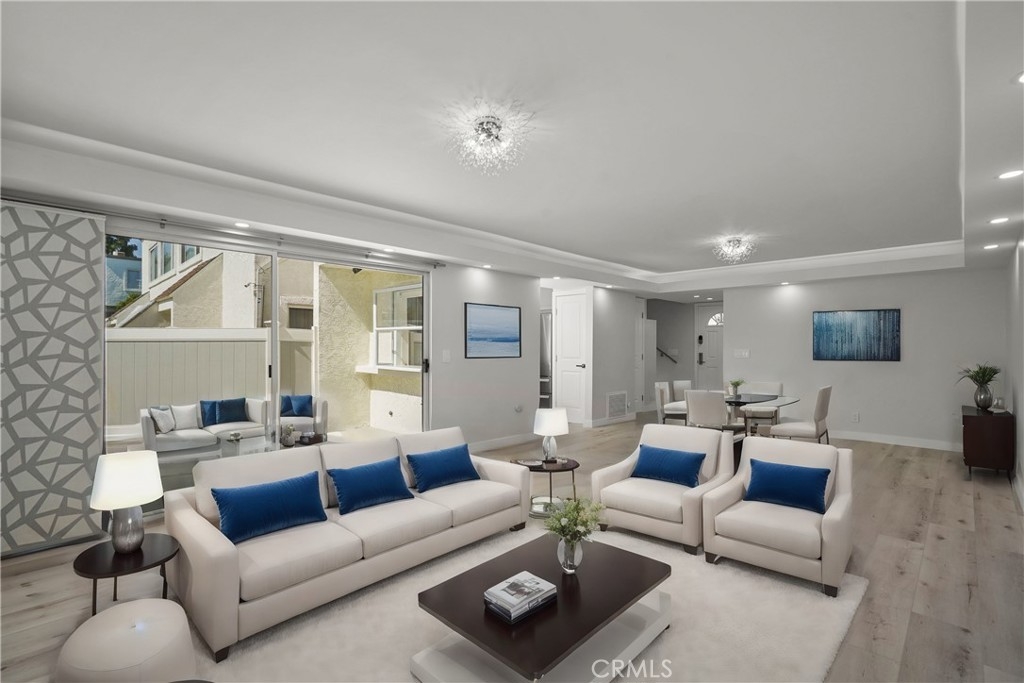 Welcome to this meticulously remodeled townhouse style residence! It's been renovated for the seller's personal residence; however, he's accepted an overseas job and has decided to sell. A great deal of time and costs were invested to create this truly exceptional space that is sure to impress even the fussiest home shoppers. The living room opens to a good size patio, perfect for lounging and BBQ. The floors are good quality vinyl with a soft grey modern look that complements the walls and overall style beautifully. Modern light fixtures with special lighting features in every room add to the contemporary appeal. The kitchen boasts a garden window overlooking the patio, modern new cabinetry with Lazy Susan Pantries, a full set of brand-new LG ThinQ appliances including a double oven, and a unique multi-water function faucet/sink set. The bathrooms feature beautifully designed tile work, bidet toilets, modern chrome faucets and fixtures, multi-lighting touch sensor mirrors, sensor light dimmers, multi-water function shower fixtures, and a master bathroom with double sinks, a jacuzzi jet bathtub, and a large rain showerhead. Additional features include a large brand-new LG Smart TV, a built-in LG ThinQ styler steam closet, side-by-side standard size washer and dryer, Ring security cameras, Nest thermostat programmable from your cell phone, and many other Smart Home amenities. Don't miss out on viewing this very stylish pad!