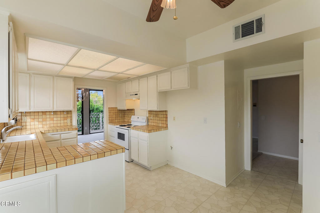 This wonderful 2 bedroom, 2 bath, top-floor end unit has an open floorplan and is located in a great part of Northridge. The formal entry leads to the large, bright and spacious living area with stunning and picturesque mountain views. The living room/dining area has high ceilings, a wet bar, a fireplace and a large balcony which also opens to the delightful vista. There is a large, sunny kitchen with an adjoining eating area, tons of storage and a convenient laundry closet. Down the hall is a good-sized bedroom and a three-quarter bath. The master suite has a full bath with double sinks as well as separate tub and shower. Both bedrooms have large closets and wonderful tree-top views from the windows. Complex amenities include a swimming pool, spa, gated parking and private storage units. This location has excellent access to restaurants, shopping, Cal State Northridge and the Northridge Fashion Center. Welcome home!