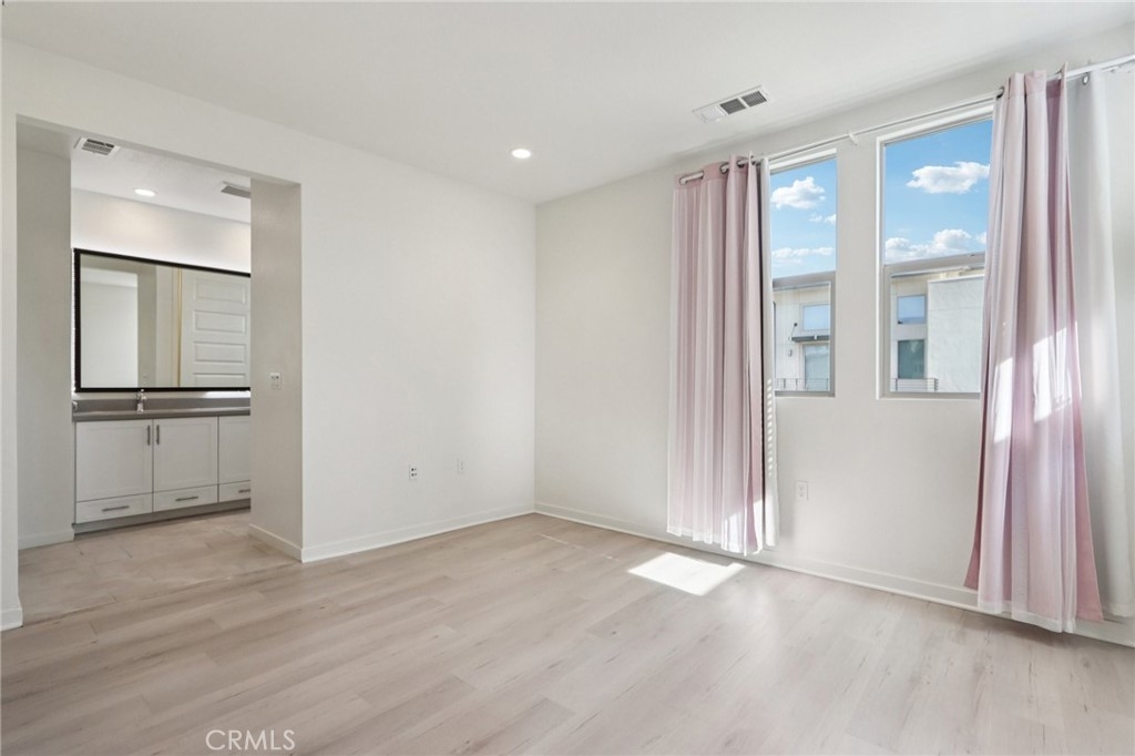 Luxury Living at Its Best! Welcome to this stunning, move-in-ready townhome located in the prestigious resort-style community of The District. This exquisite 4-bedroom, 3.5-bath corner residence, spanning just under 2,100 sq ft, offers an exceptional blend of modern elegance and upscale living. Designed for effortless entertaining, the open-concept floor plan features a spacious living room with a private balcony and a true chef’s kitchen showcasing a large center island, quartz countertops, stainless steel appliances, farmhouse sink, and pantry. The entry level includes a private bedroom—ideal for guests, a home office, or multigenerational living—along with direct access to a two-car garage. Upstairs, you’ll find three additional bedrooms, a separate laundry room with built-ins, and a luxurious primary suite complete with an en-suite bath featuring dual vanities, an expansive wall-to-wall shower, and a walk-in closet. Additional highlights include a tankless water heater, tile flooring in the living areas, laminate flooring in the bedrooms, dual-pane windows, and numerous modern upgrades throughout. Residents enjoy The District’s resort-style amenities, including a sparkling pool and spa, outdoor cooking and BBQ areas, picnic spaces, dog park, fire pits, stylish lounge seating, an entertainer’s area with TV, and ample guest parking. Ideally located near premier shopping and dining destinations such as Northridge Fashion Center, Porto’s Bakery, Costco, Target, Super King Marketplace, and Lowe’s. Northridge living at its finest.