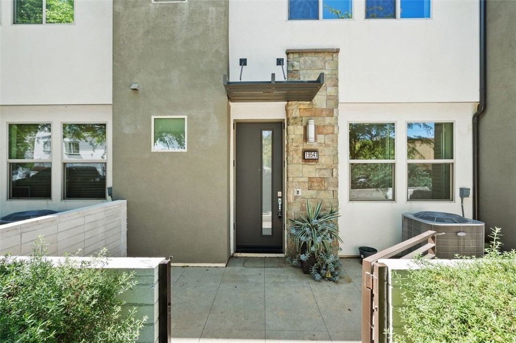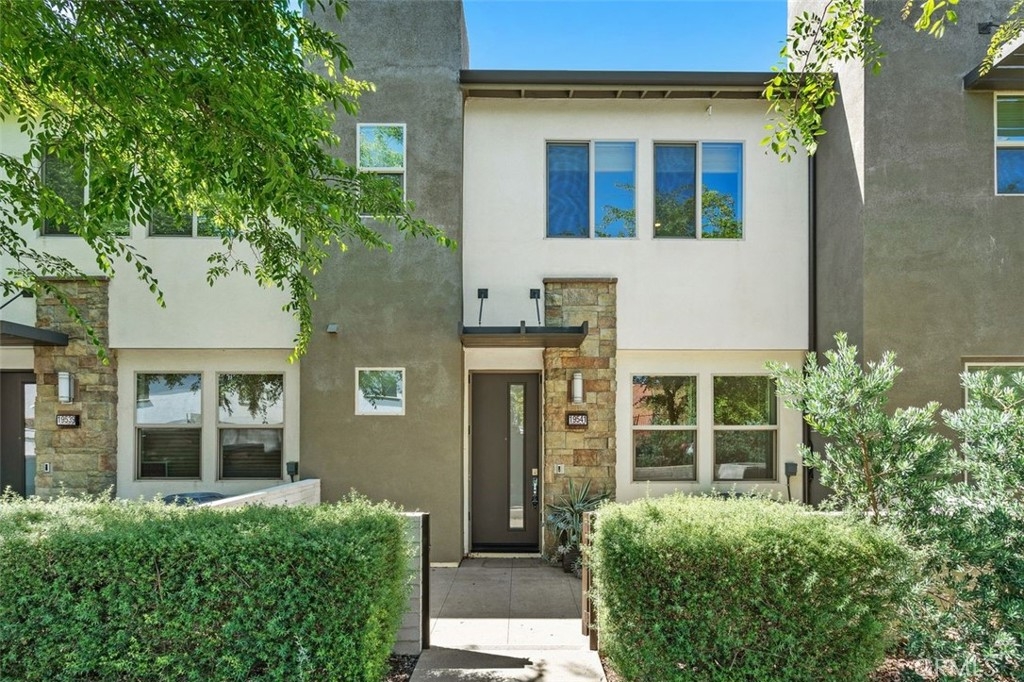 Welcome to this stunning 3-bedroom, 2.5-bath townhome, offering 1,415 square feet of thoughtfully designed living space. This modern residence is perfect for those seeking comfort, convenience and style. The main level is a light-filled, open-concept living, kitchen and dining area. The sleek kitchen boasts crisp white cabinetry, quartz countertops, and stainless steel appliances, making it both functional and stylish for cooking or entertaining. The island doubles as a breakfast bar and offers plenty of workspace. Adjacent, the dining area and spacious living room create a seamless flow for gatherings or relaxation, with leading to your private front outdoor space. The primary bedroom features an suite bathroom, offering a tranquil retreat with a large vanity and walk-in shower. The additional three bedrooms are generously sized, with ample closet space and contemporary finishes. For added convenience, the home includes in-unit laundry and a direct-access 2-car garage. Community highlights include a sparkling pool with lounging areas, perfect for enjoying sunny California days. The home is situated within a mile of an array of amenities, including popular shops, restaurants, and entertainment options like Porto's Bakery, Northridge Fashion Center, Target, and Trader Joe's, an array of dining. The neighborhood also offers parks, fitness centers, and excellent schools, making this a prime location.