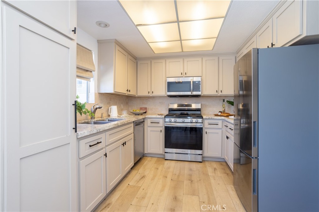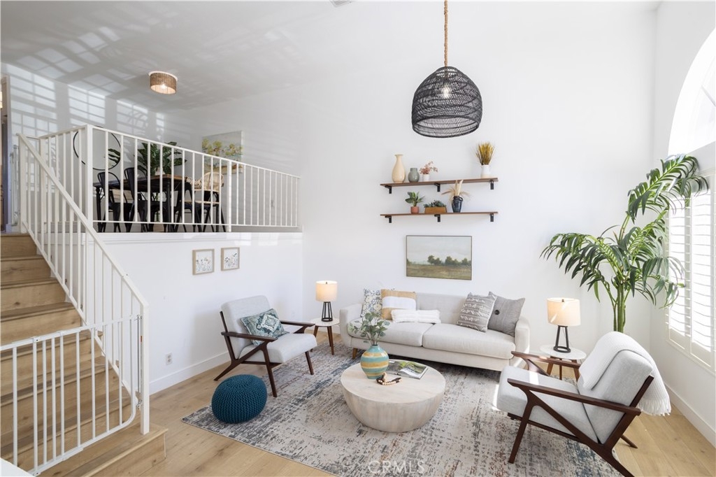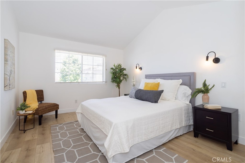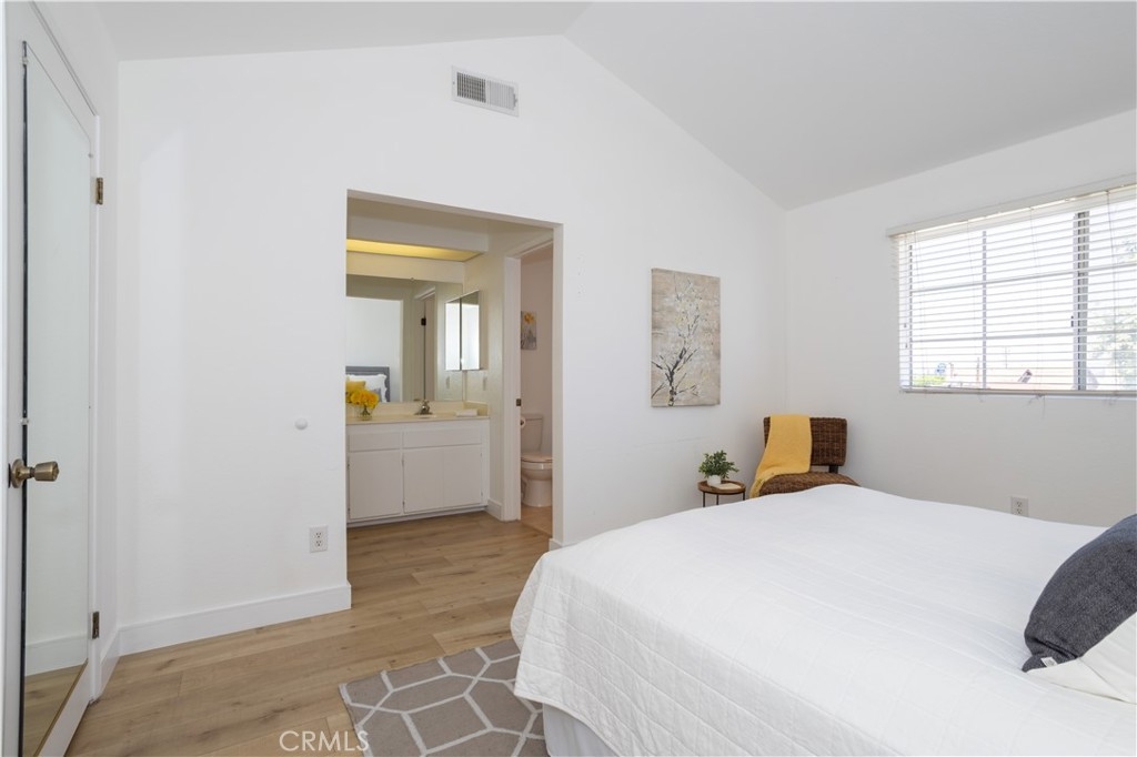 Beautiful and peaceful townhouse in the heart of Northridge. High ceiling interiors with bright lighting. The newly renovated kitchen with new appliances includes a cozy nook and overlooks the dining room and living area. The living room has custom shutters and impeccable natural light. New flooring throughout the home and newer HVAC. On the top floor you will find a large primary suite and ensuite bathroom, boasting of high ceilings, and a walk-in closet. Conveniently located laundry area near the bedrooms. The second primary bedroom also includes an ensuite bathroom and walk-in closet. The attached garage is conveniently located on the first floor. This property is near restaurants, shopping, entertainment and more! A must see.