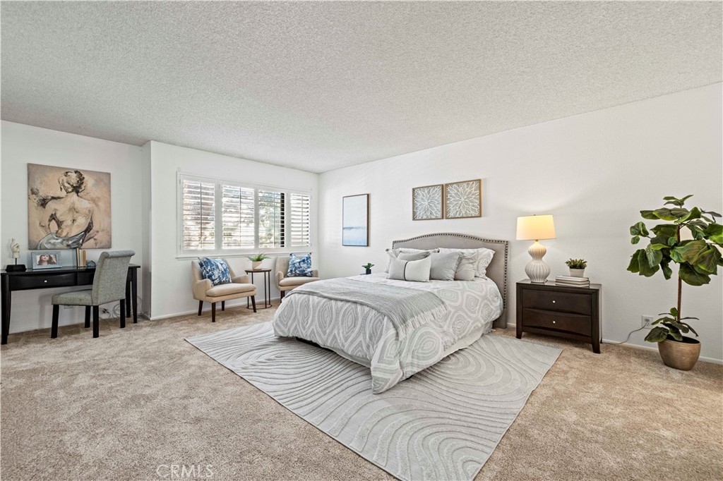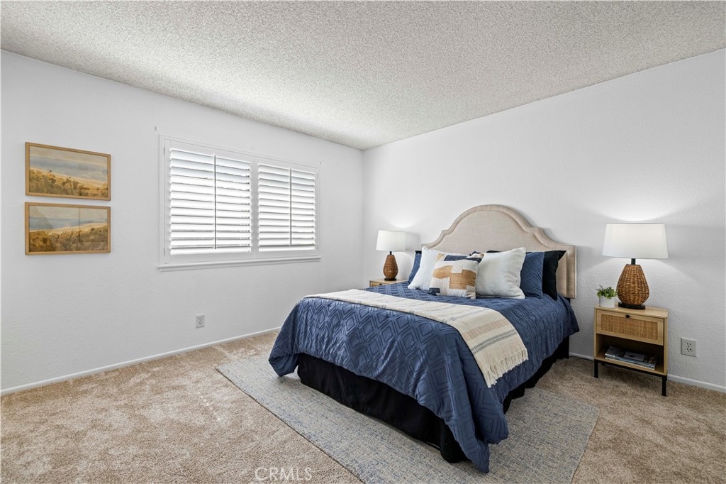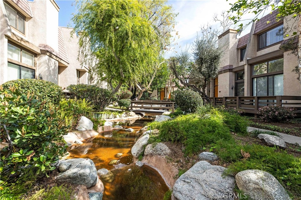MOVE-IN READY townhome in the heart of Northridge with close to 1,500 sf of light & bright living space featuring plantation shutters throughout and newer interior paint, carpet, and light fixtures! This beauty boasts 2 bedrooms and 2.5 bathrooms where you're greeted past your charming front porch into your first level featuring a spacious living room illuminated with natural light pouring in through your plantation shutters and a gas fireplace to cozy up the space. Walk up a few steps where you'll find your powder room, separate dining area, wet-bar, and comfortable eat-in kitchen that features a pantry, recessed lighting, and plenty of cabinetry. Head to the top level where you'll find both of your bedrooms each with their own ensuite bathrooms! Your primary suite is very spacious and includes a walk-in closet with built-in shelving. Your attached 2 car garage includes your washer/dryer hookups, the roof was just redone in 2023, and earthquake retrofitting done in 2022. The complex is so peaceful and serene with streams that flow under and around multiple bridges, 3 garden spas, a pool, and two tennis courts. The HOA covers 24 hour security, water, sewer, and earthquake insurance. Your perfectly situated close to an abundance of shopping and dining options including the Northridge Fashion Center, Dave & Buster's, Porto's Bakery, Costco, CSUN, public transportation, and so much more! Come and check out this gem and begin the next chapter of your life! COMPLEX IS VA APPROVED!