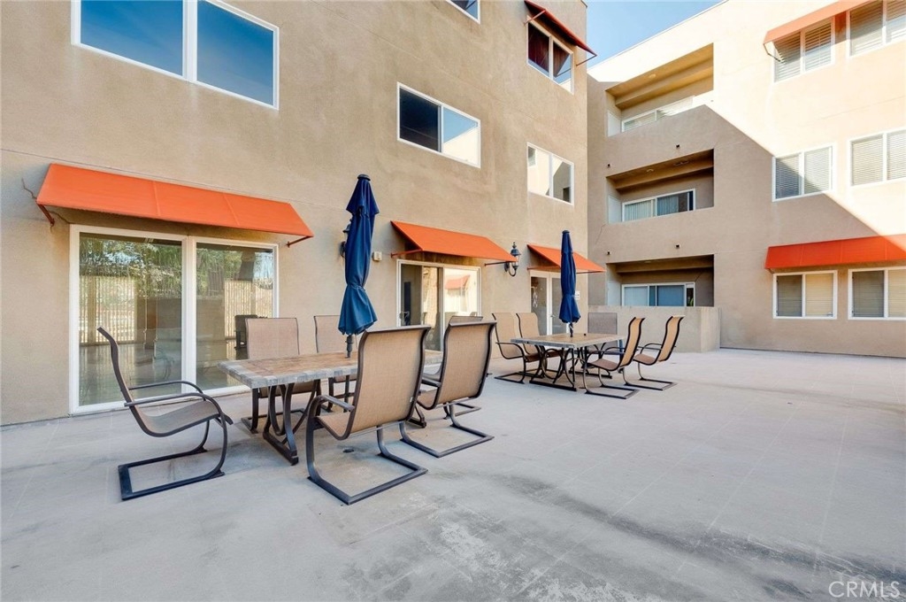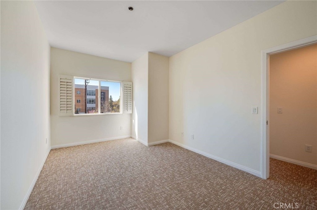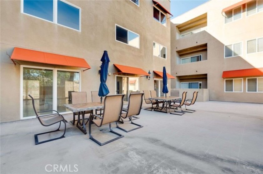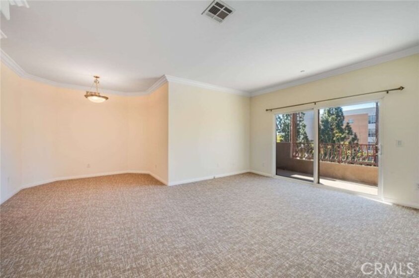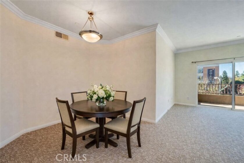 Top-floor condominium located adjacent to CSUN with serene treetop views. This light and bright unit features fresh interior paint and newer carpet. The open-concept kitchen overlooks the living room and dining area. Kitchen is equipped with stainless steel appliances, including a built-in microwave, refrigerator, dishwasher, recessed lighting, and ample cabinetry. The living room offers sliding glass doors to a private balcony, perfect for enjoying the peaceful treetop setting. Primary bedroom offers a walk-in closet and an en-suite bathroom with a separate tub and shower. Two additional bedrooms feature plantation shutters and mirrored closet doors. A full hallway bathroom includes tile countertops and flooring, along with a convenient guest bathroom for added functionality. In-unit laundry closet includes a stackable washer and dryer. Community amenities include a pool, built-in BBQ areas, fitness center, and a welcoming lobby sitting area. This unit includes two tandem parking spaces. An ideal opportunity for owner-occupants or investors seeking a prime Northridge location near CSUN.