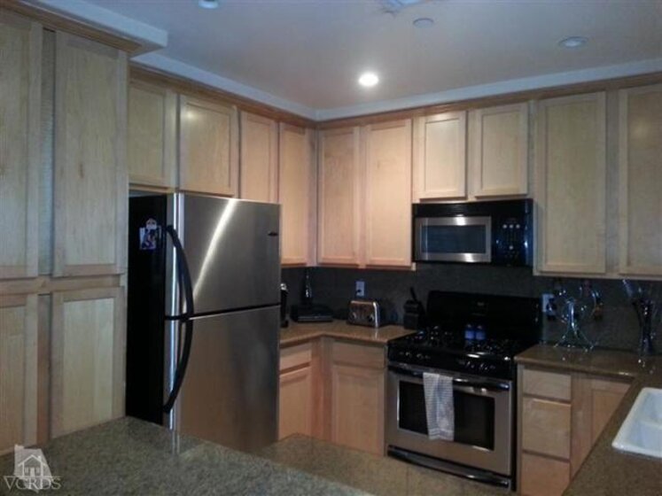 Built in 2004 across the street from Cal State Northridge. Desirable 2 bedroom condo with 2 baths. Kitchen has beautiful granite counters with a breakfast bar, maple cabinets and stainless steel appliances. Wood floor entry. New carpet and paint will be installed soon. Master bedroom has 3 mirrored closets. Both bathrooms have stall shower & tub. Unit has private balcony. Community pool, gym and barbeque. Elevator to gated parking. Welcome Home!