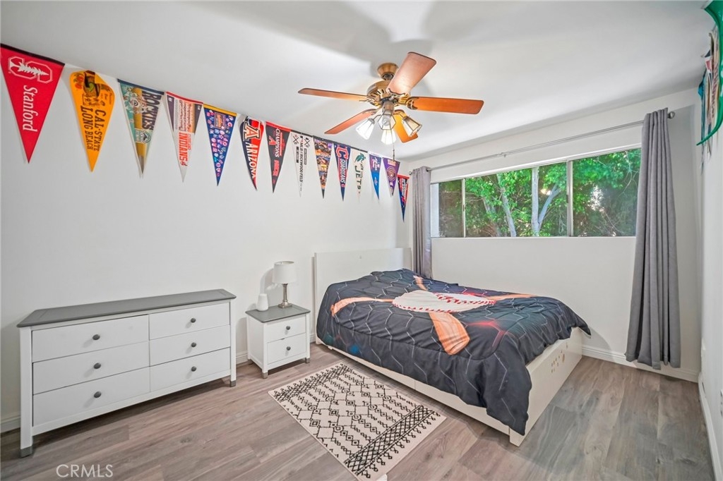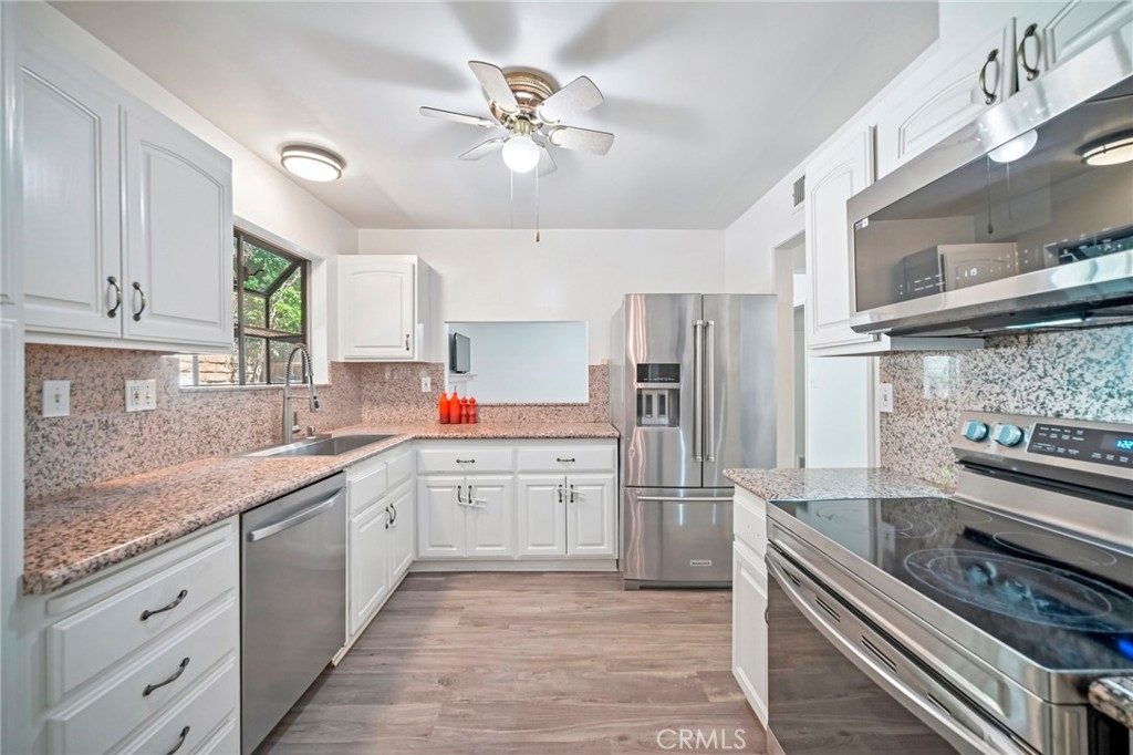 Welcome to this charming home in a prime area of Northridge! Close to great schools and the best that the Valley has to offer! The heart of the home is a stunning, refreshed kitchen boasting gleaming granite countertops, crisp white cabinetry, stainless steel appliances — including a French-door refrigerator and dishwasher — and warm wood-look floor that ties it all together effortlessly. Natural light pours in through generous windows, creating a bright and welcoming ambiance throughout. The primary bedroom is your personal sanctuary, featuring two closets including a walk-in closet, ceiling fan, sleek hardwood-style floors, and private access to an outdoor space perfect for morning coffee. Two additional bedrooms upstairs provide versatile space for family or a home office. The private backyard has plenty of room to play or entertain. Don’t miss this great opportunity, close to shopping and restaurants.